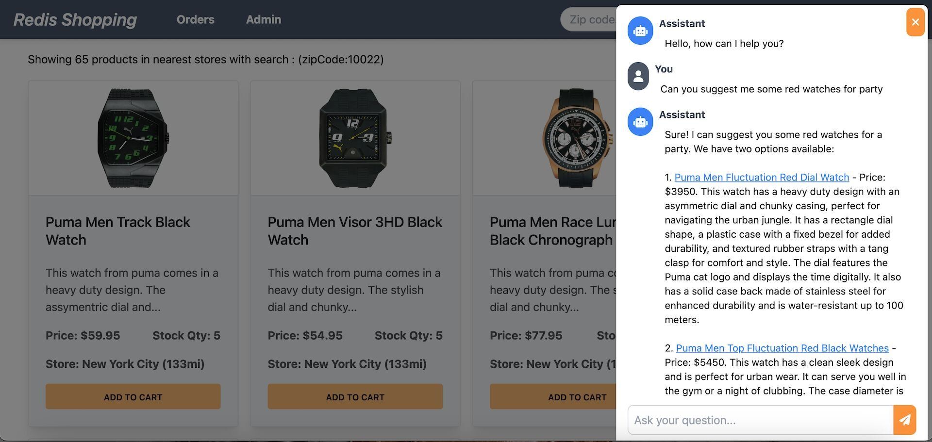 - Setting up the chatbot API : Creating a chatbot API that uses OpenAI and Redis to answer user questions and recommend products.